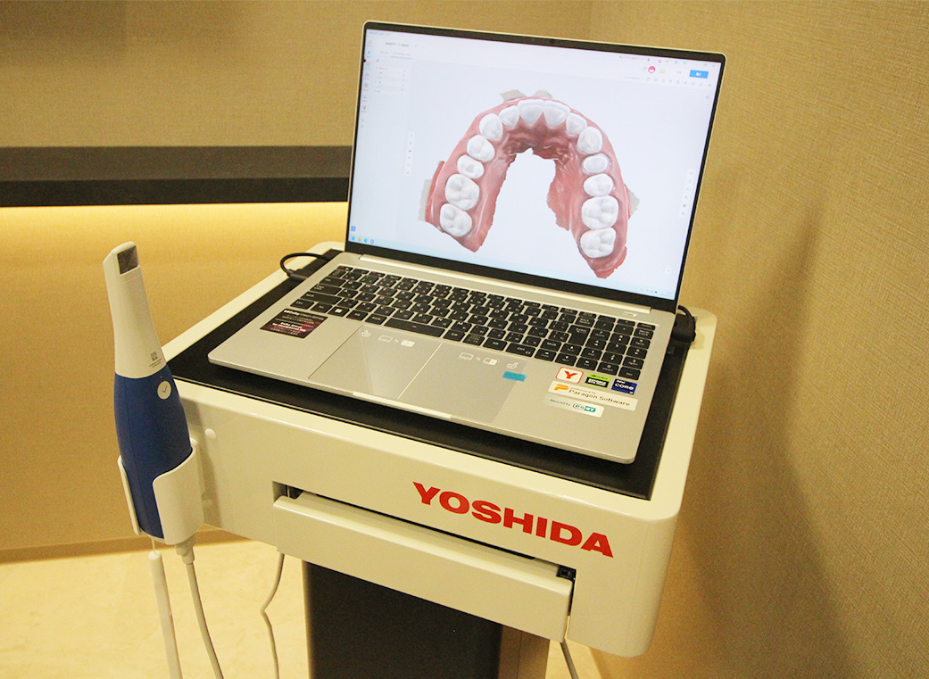 マウスピース型の矯正治療においては3D光学スキャナーを用いて型取りを行います。