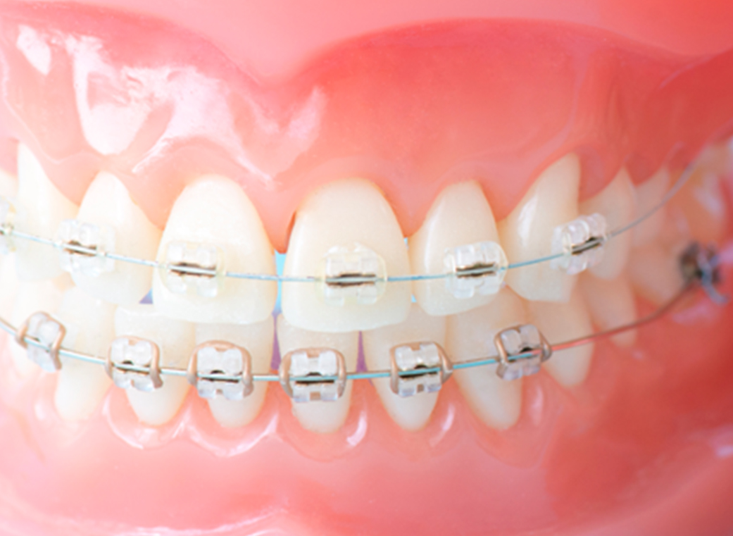 見た目が気になる方には、一般的な金属製のブラケットではなく、目立ちにくい透明のブラケットもご提案できます。さらに、歯に馴染む白色のワイヤーもお選びいただけます。